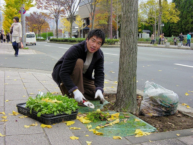 委員会には北山通りとその周辺にある企業、学校、個人など多数が参加しており、植え替え作業も自分たちで行っています。